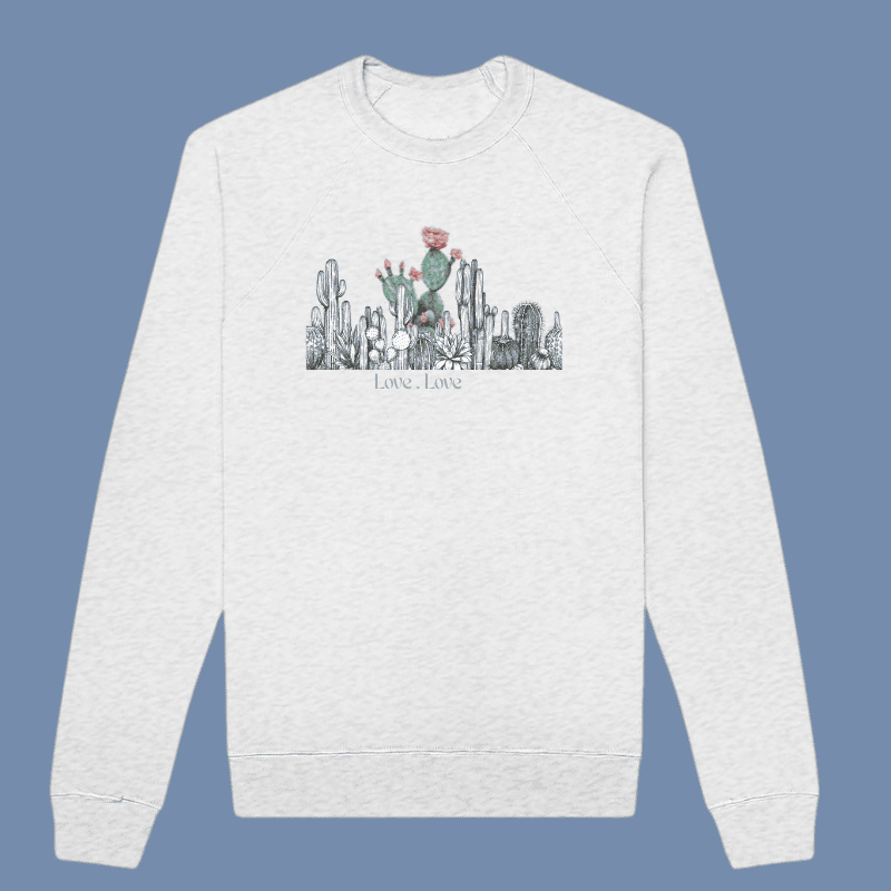 Cozy meets style with this charming cactus floral crewneck sweatshirt. Featuring a botanical "Love . Love" graphic print on premium fleece fabric. Perfect for casual everyday wear.